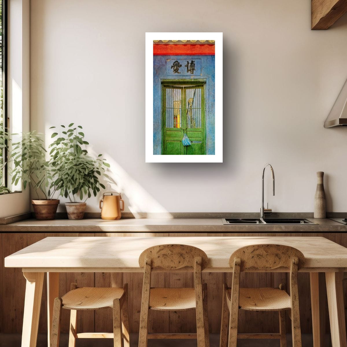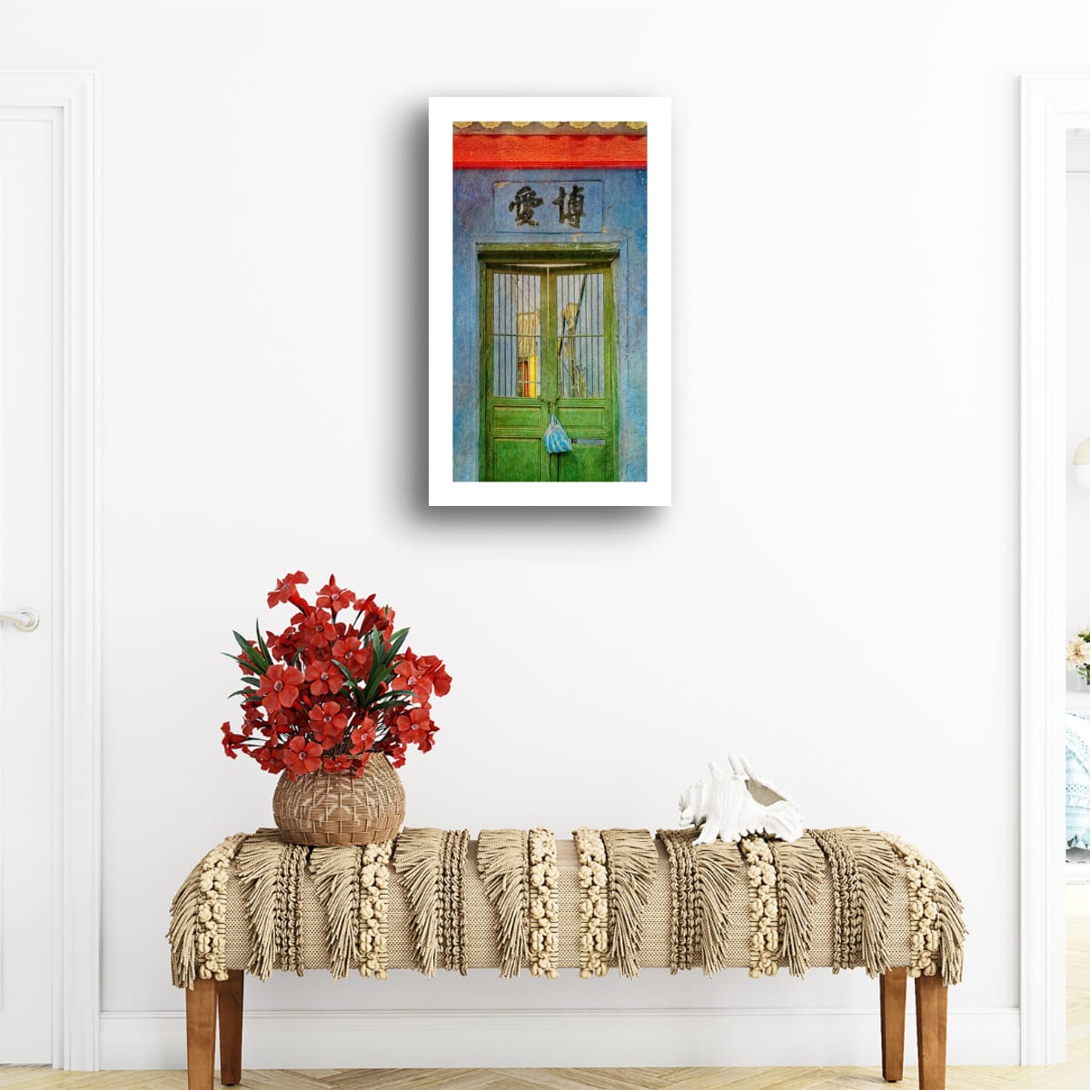 This colourful doorway was down a backstreet in Hoi An, Vietnam, and I immediately noticed the blue bag tied to the green door which added a focal point and a question- why was it there? Local delivery? Left by a friend? Who knows!