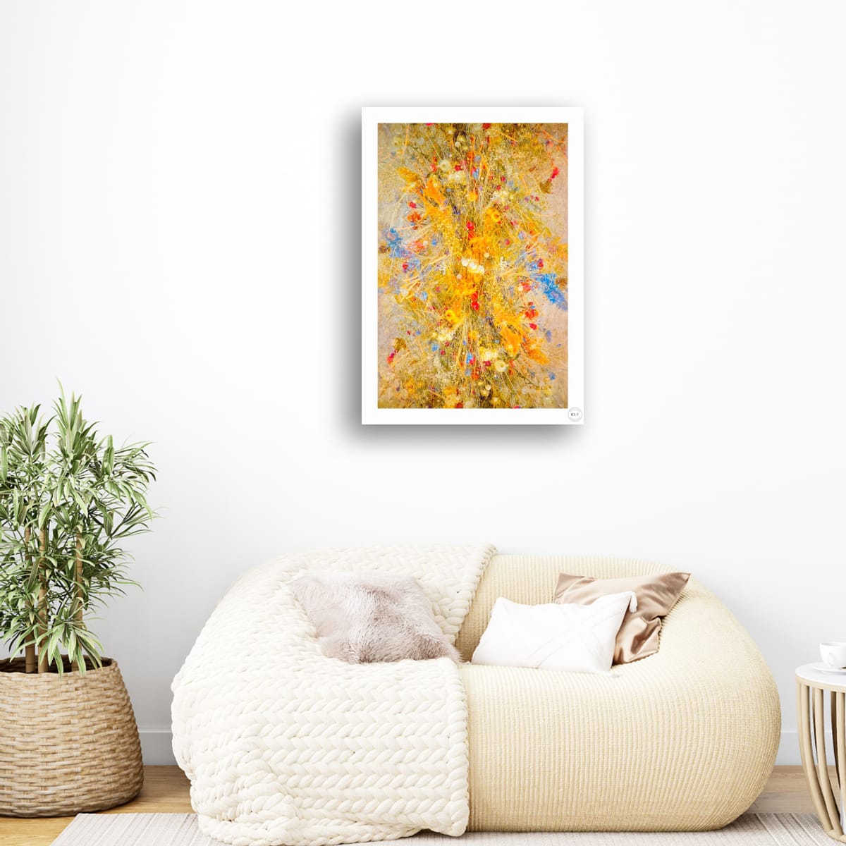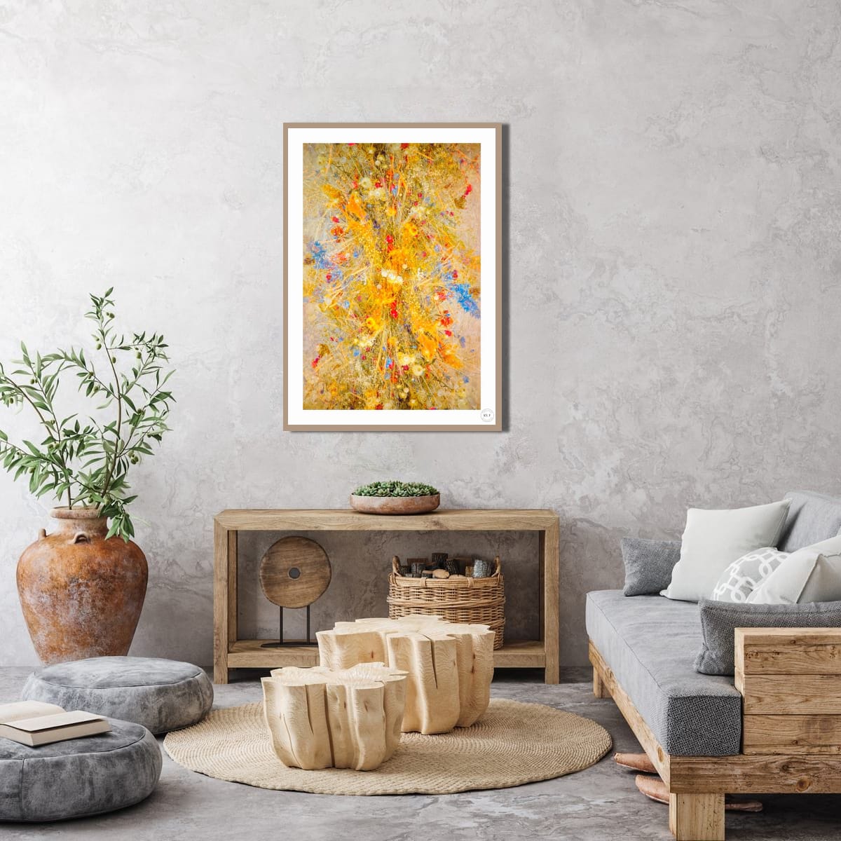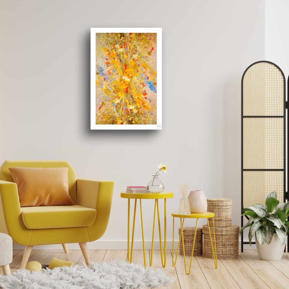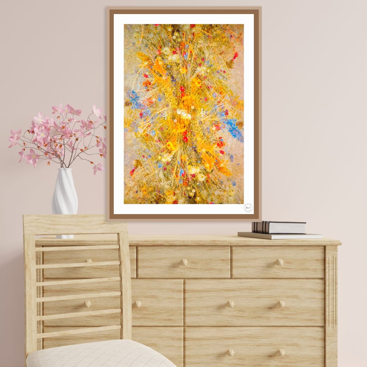 This artwork presents a captivating multiple exposure of vibrant flower arrangements where the interplay of colours and textures creates a dynamic visual experience. Each layer reveals a new aspect of the floral compositions, making it a delightful addition to any space.