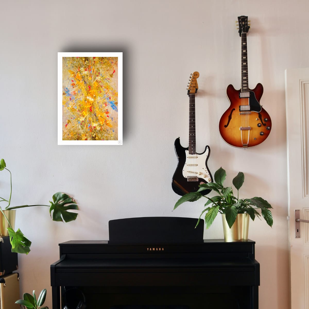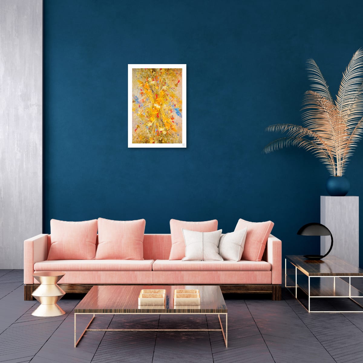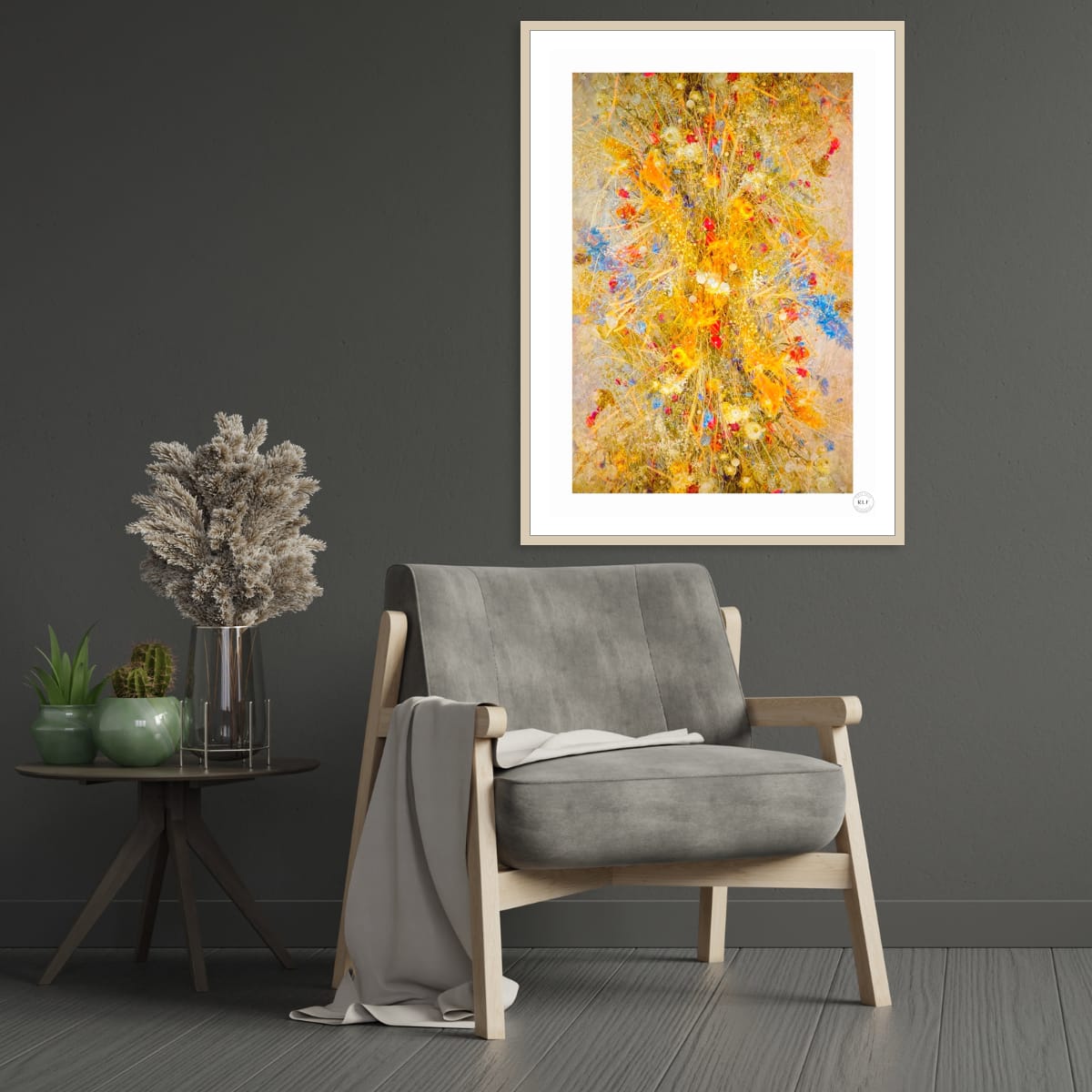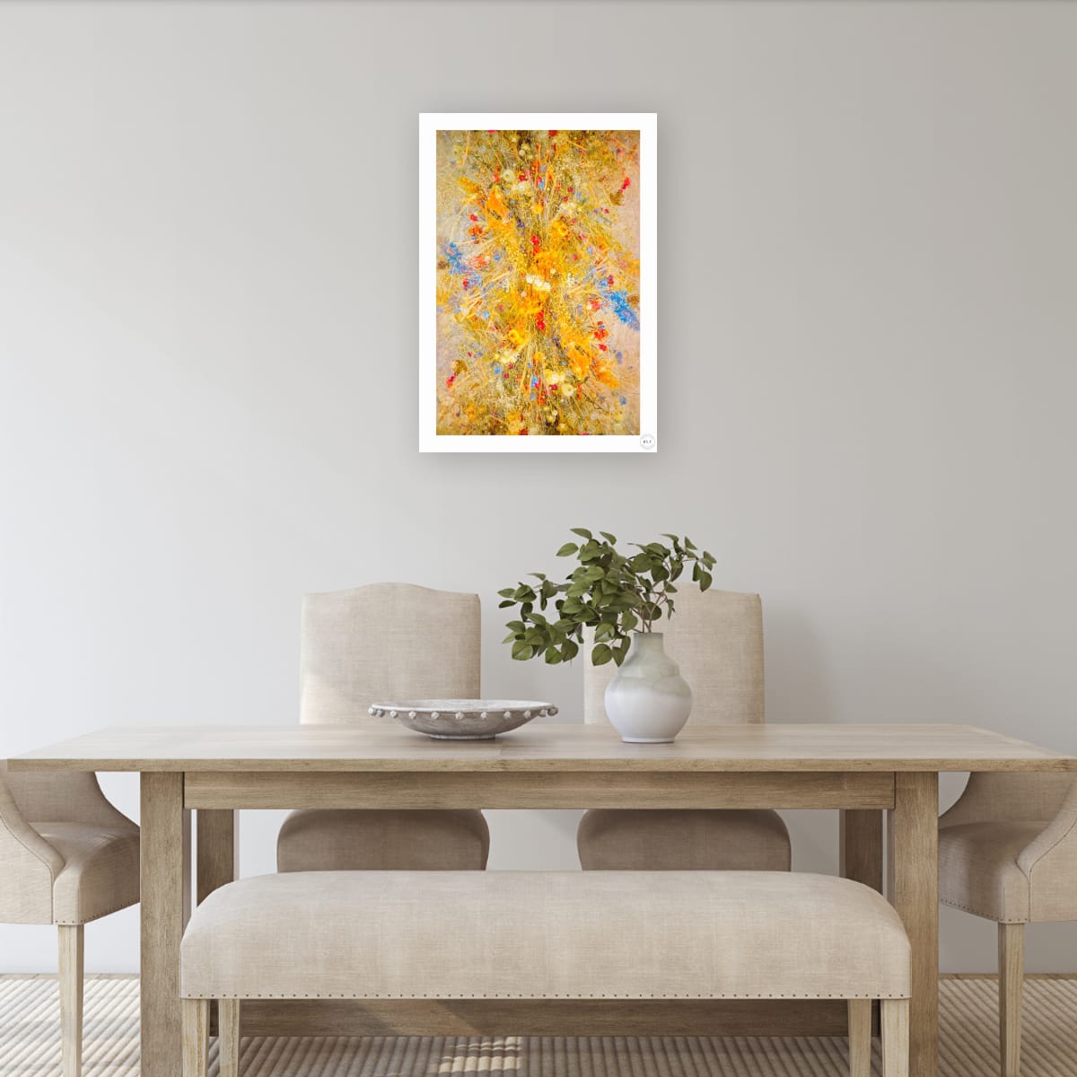 This artwork presents a captivating multiple exposure of vibrant flower arrangements where the interplay of colours and textures creates a dynamic visual experience. Each layer reveals a new aspect of the floral compositions, making it a delightful addition to any space.