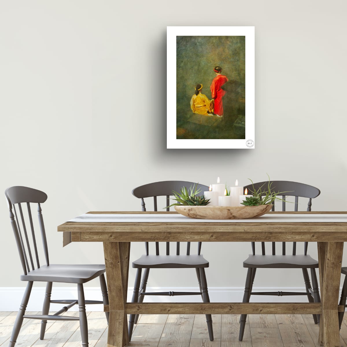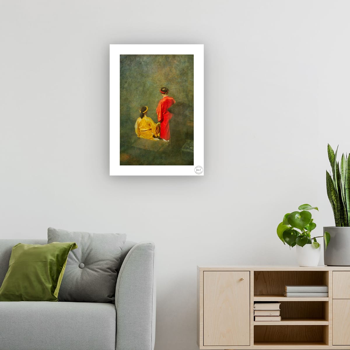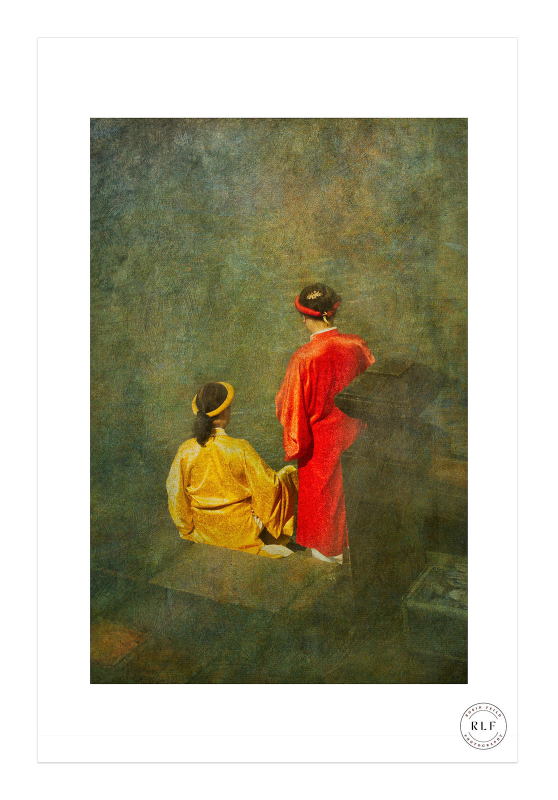 A timeless photograph with a painterly feel, Red and Gold captures two figures in traditional attire, radiating elegance and serenity.Rich in colour and texture, this fine art print adds warmth and sophistication to any space.