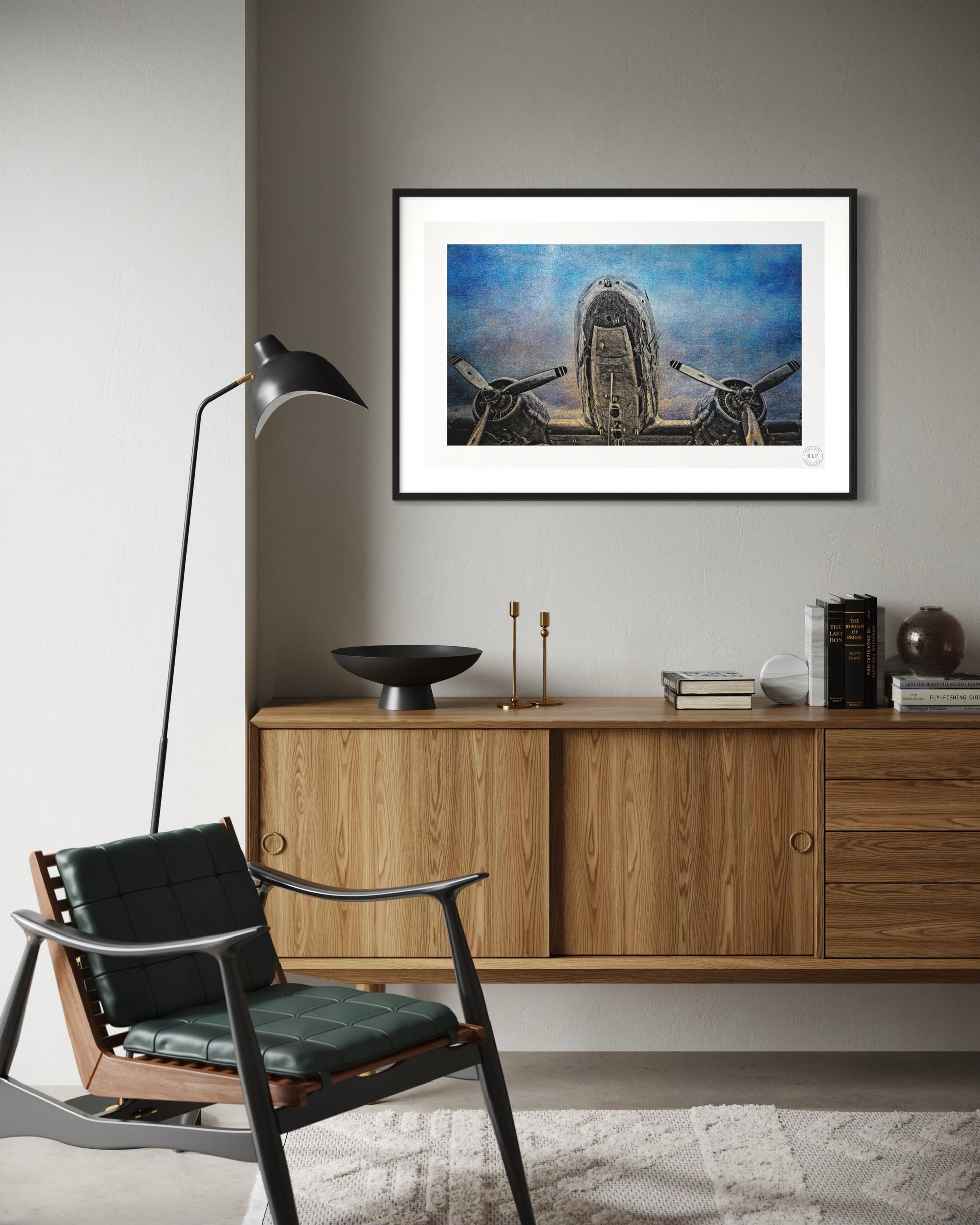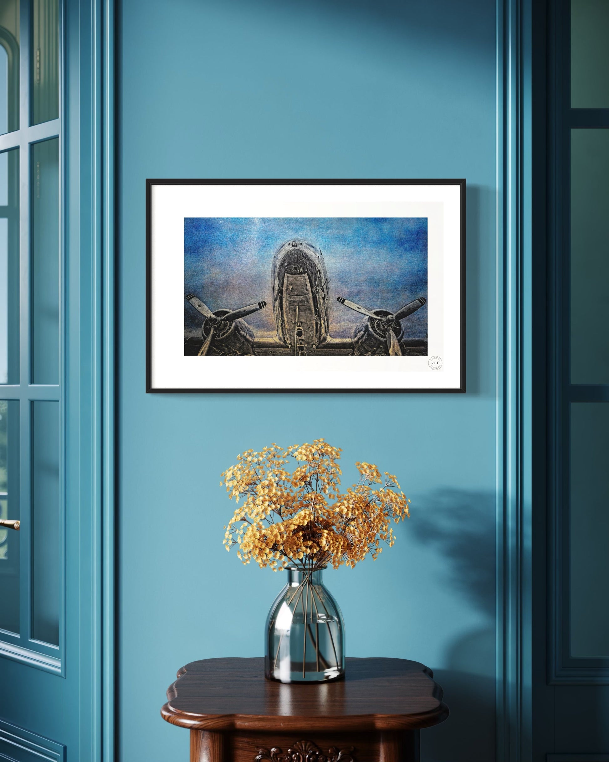 The perspective invites viewers to appreciate the intricate details of the aircraft's design, evoking a sense of nostalgia for the golden age of aviation.